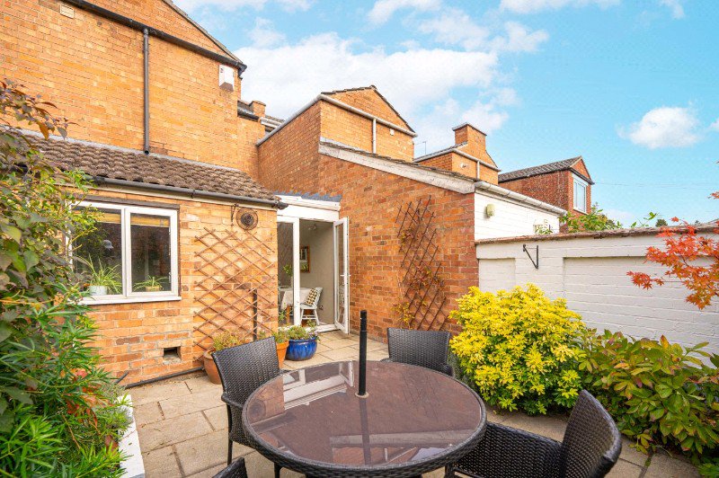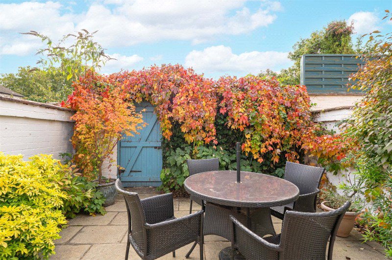 Upstairs, the first floor hosts two well-proportioned double bedrooms and a family bathroom. The master bedroom enjoys ample natural light through its bay window and includes fitted wardrobes, while the rear double bedroom overlooks the peaceful garden terrace.