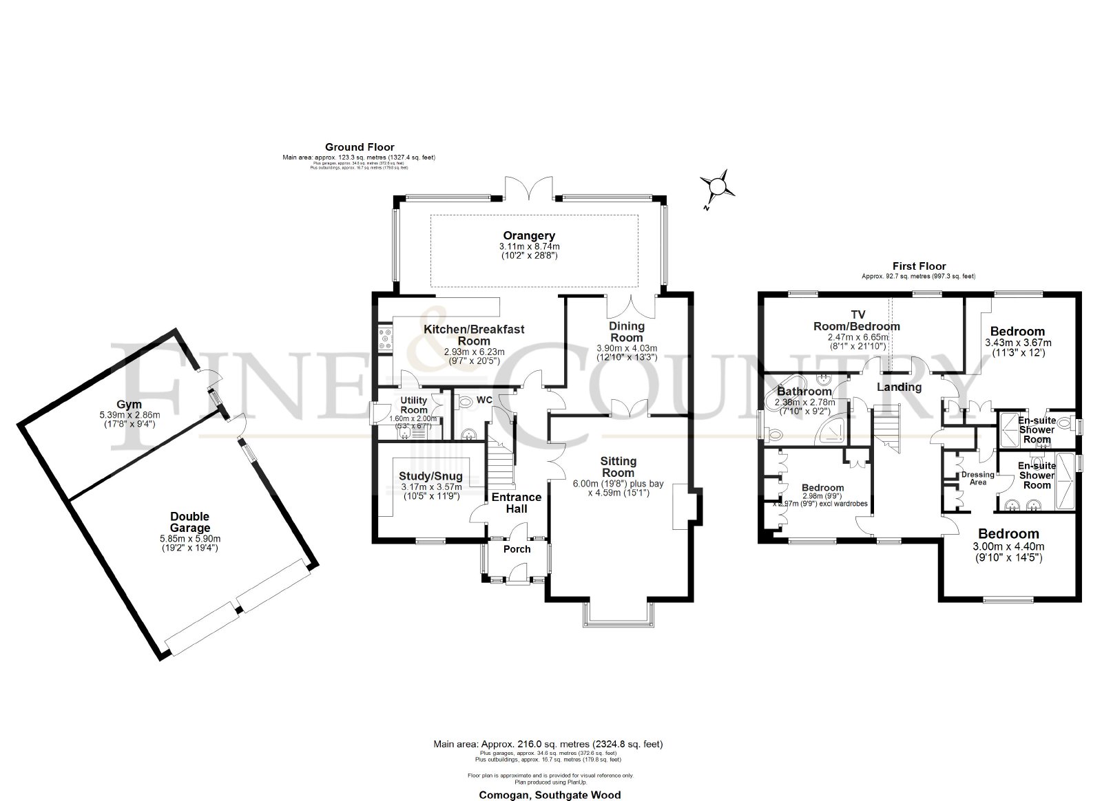 Vestibule | Entrance Hall | Sitting Room | Dining Room/Playroom | Study/Snug | Kitchen/Breakfast Room/Orangery | Utility Room | WC/Cloakroom | Gym | Double Garage