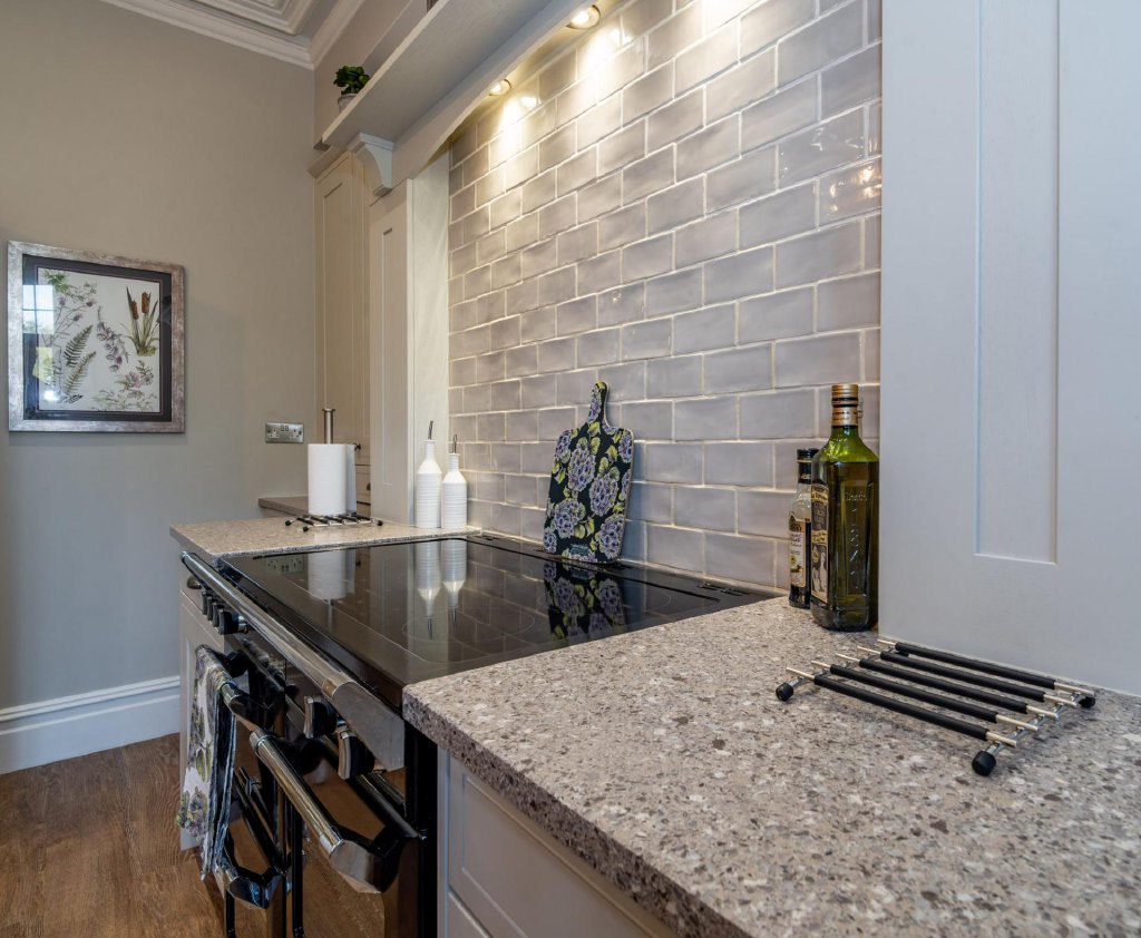 - Refurbished kitchen dining room with quartz work surfaces, range cooker, and sea views