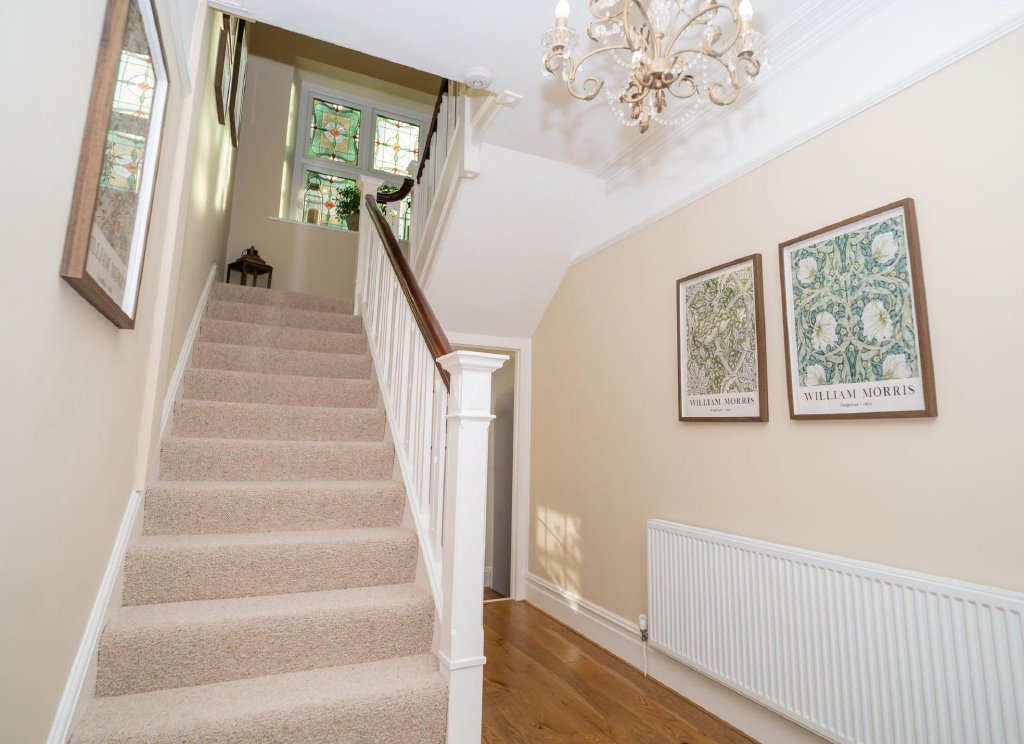 - Period features throughout: stained glass, fireplaces, oak flooring, coving, and picture rails