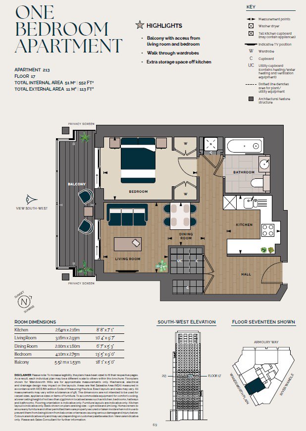 Situated on the 17th floor of Wandsworth Mills’ striking Artisan Tower, this stylish home features open-plan living and a full-width balcony that offers sweeping views of the Capital.