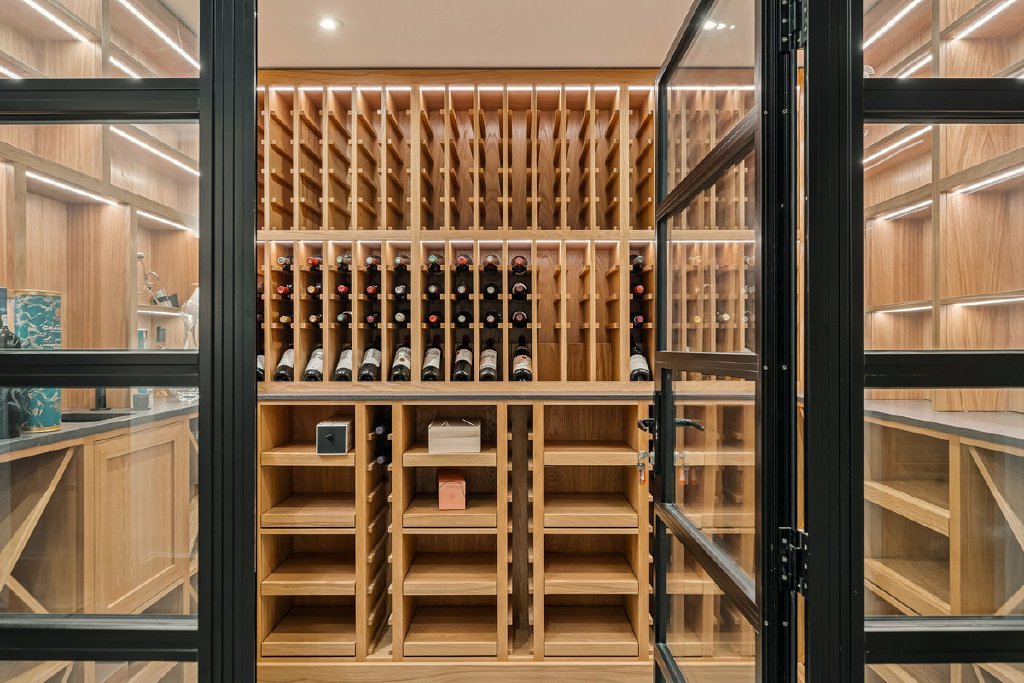 Also located on the ground floor is a study or additional reception room, ideal for use as a home office, along with a well-appointed guest cloakroom. A staircase descends to the lower ground level, where the accommodation continues to impress with a state-of-the-art cinema room, complete with projector, wide viewing screen, and integrated five-speaker surround sound system. Adjacent to the cinema is a bespoke bar, featuring a dishwasher, fridge, and sink, with ample space to accommodate a snooker or table tennis table, making this an ideal space for informal entertaining. This level also benefits from a bespoke LED-lit wine cellar and two beautifully appointed bedroom suites, each with its own dressing room and luxurious en-suite bathroom.