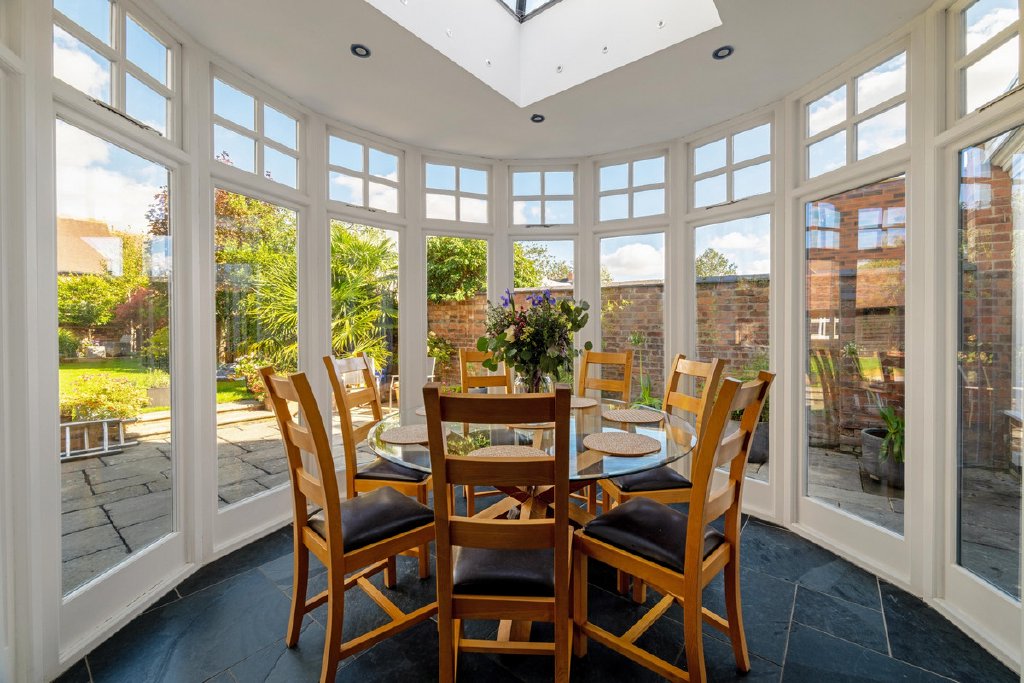 - Sympathetic, modern extension with glazed canopy and open plan kitchen/dining room