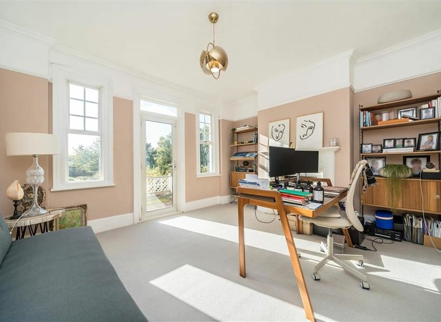 Spanning three floors, this impressive period property offers generous living space, including a large through-reception with bay window and shutters, and a stylish kitchen with central island perfect for family living and entertaining.