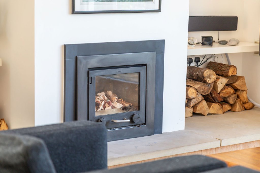 Gardens surround the house and echo the design ethos of the property’s interior. Unfussy lawns and seating areas requiring minimal upkeep to allow more time for enjoying precious downtime. The rear garden is a real sun trap during most of the day, it’s sheltered from the wind and great for outdoor breakfast and lunches, it includes a wildflower border and there is a small orchard to the south including apple, pear, plum, cherry and damson trees. The seating areas all benefit from a strong connection to the interior, enhancing the overall flow and blurring the boundaries between inside and out. A stream runs along the northern boundary, the vendor tells us that children and dogs love to play in it, as do the birds, “the sound of it, particularly at night, is very comforting”.