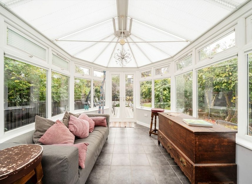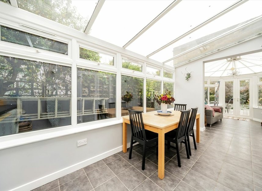 Benefits from the retention of a host of period features, off street parking and an enormous 'L' shaped south facing garden.