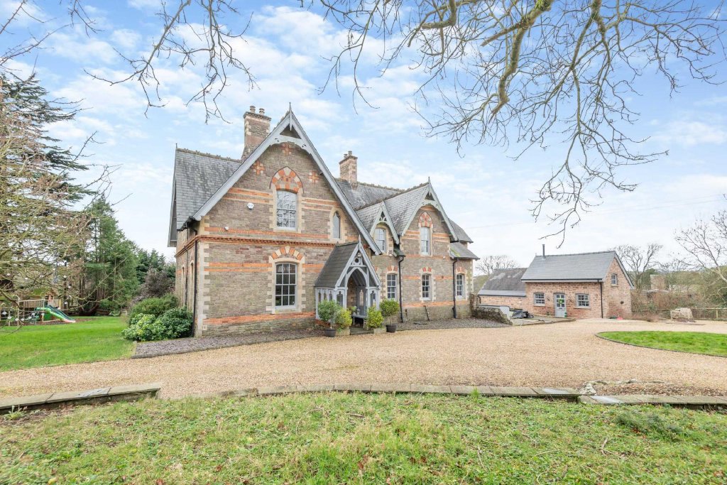 The grand house with historic stature commands the impressive entrance of electric gates and substantial driveway that sweeps around the front of the house to a turning circle outside the detached garden cottage.