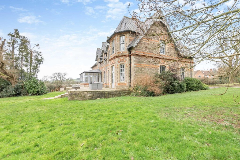 To the rear of the house you will find a substantial, sunny terrace, accessed directly from the sunroom and the drawing room, that can happily host a large social gathering that can spill out onto the lawn via a set of rather grand stone steps. A side terrace leads to the garden cottage which can boast its own slice of patio.