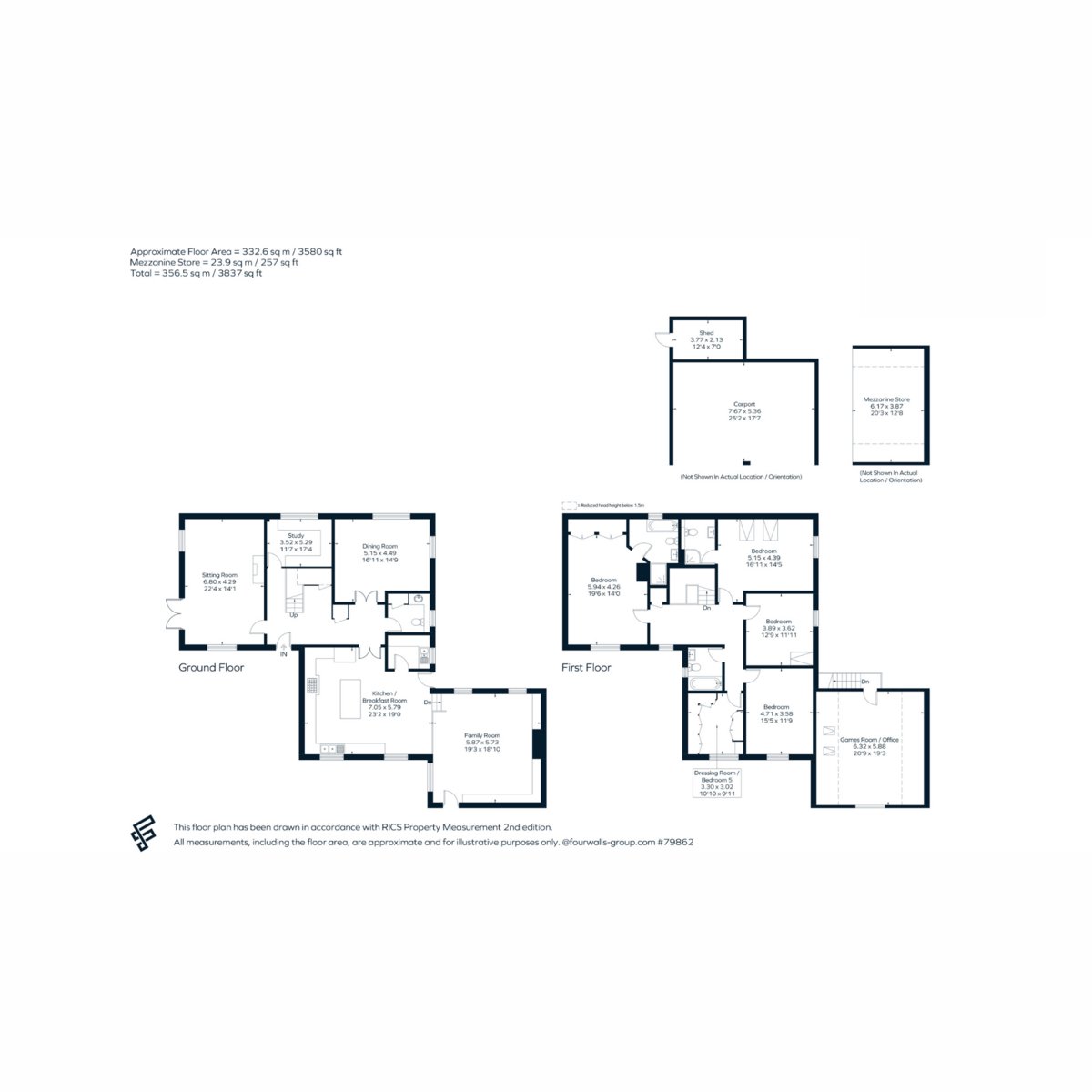 The front door of this beautiful home opens into a spacious hallway with stairs rising to the first floor. A door leads into a generous dual-aspect sitting room (22ft x 14ft), centred around a fireplace and featuring double doors that open onto the garden. At the heart of the home is an impressive open-plan kitchen and breakfast room, complete with a utility area and direct access to the mature rear gardens. From here, a short flight of steps leads to a substantial family room (19ft x 18ft), fitted with built-in storage and designed for both relaxation and entertaining. This space also benefits from additional outdoor access. A separate study with built-in storage provides the ideal space for working from home, while double doors connect to a formal dining room, offering versatility for family living or entertaining. A generously sized cloakroom completes this level.