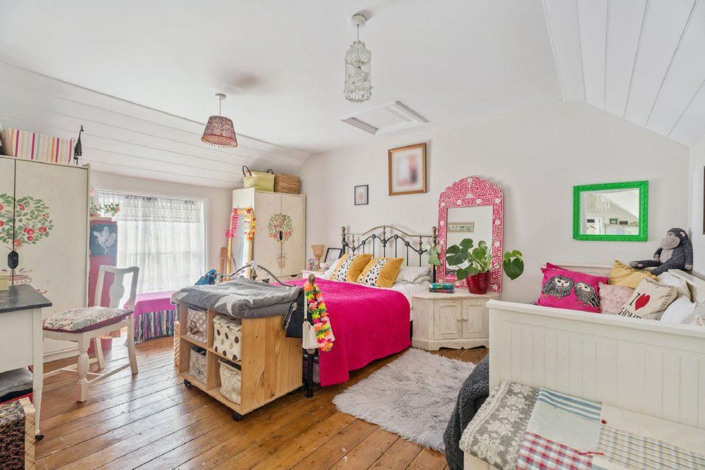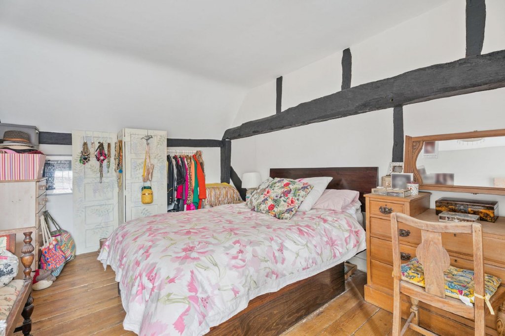 The master bedroom is a generous sized double room and features striking exposed beams, original floorboards, and a large sash window – a space full of character and warmth to unwind. The second double bedroom is a bright and inviting space featuring exposed original floorboards, angled ceilings, and access to expansive eaves storage adding practically and convenience. Completing the first floor accommodation is the third double bedroom and makes an ideal guest room, child’s room, or home office, offering flexibility for modern living.