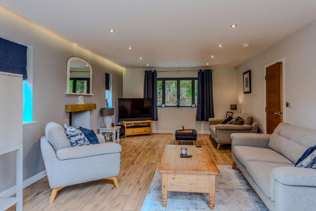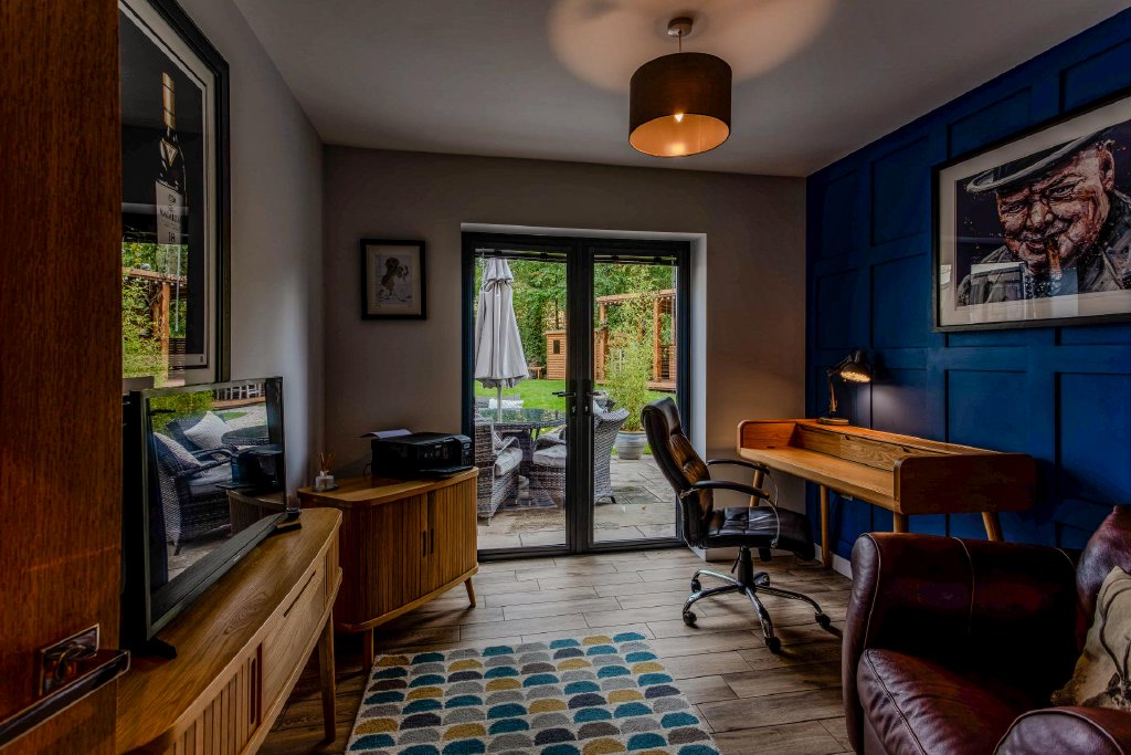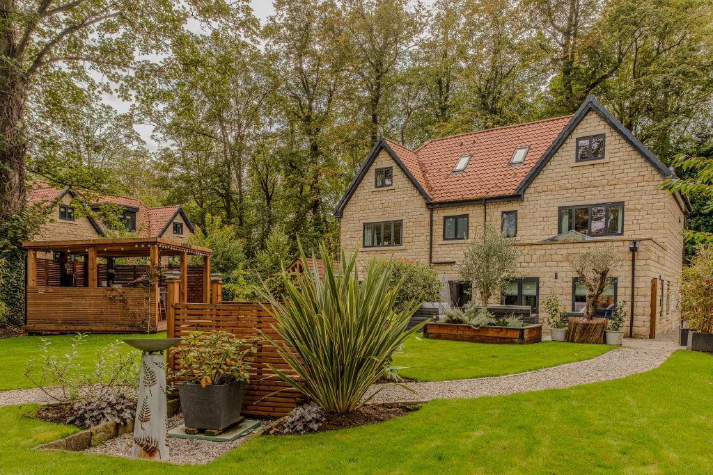 Externally this gorgeous family home boasts private gardens, an outdoor bar and a number of seating areas as well as a separate outbuilding currently used as a gym, which has planning granted for an additional annex ideal for a dependant relative or teenage offspring.