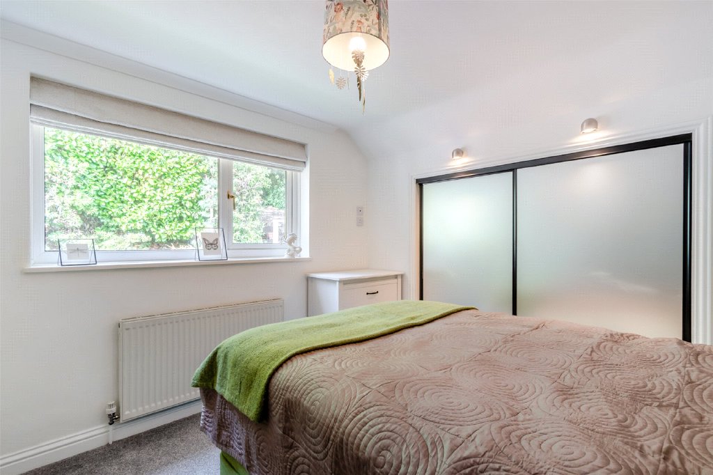 Bedroom Two 14'1" x 11' (4.3m x 3.35m). Double glazed window to front. Carpet. Plain ceiling. Radiator. Built-in cupboards. Eaves storage. Radiator.