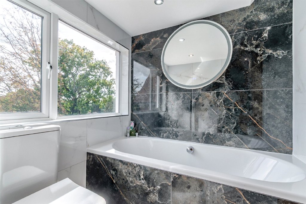 Originally a 1930s – 40s bungalow, the property was extended in the 1990s to create a spacious four-bedroom chalet-style home over two floors. “The light and layout were what really sold it to us,” the owners recall. “Large windows run across the front of the house, so you always get a view, and the flow between rooms makes it easy to live in and perfect for entertaining.” Since moving in ten years ago, the couple have modernised throughout. “We’ve added new bathrooms, landscaped the garden, and created a gym space above the detached double garage,” they explain. “We also converted one of the rooms into a cinema room, which has become a favourite with friends. The whole house now feels modern, bright and practical.”