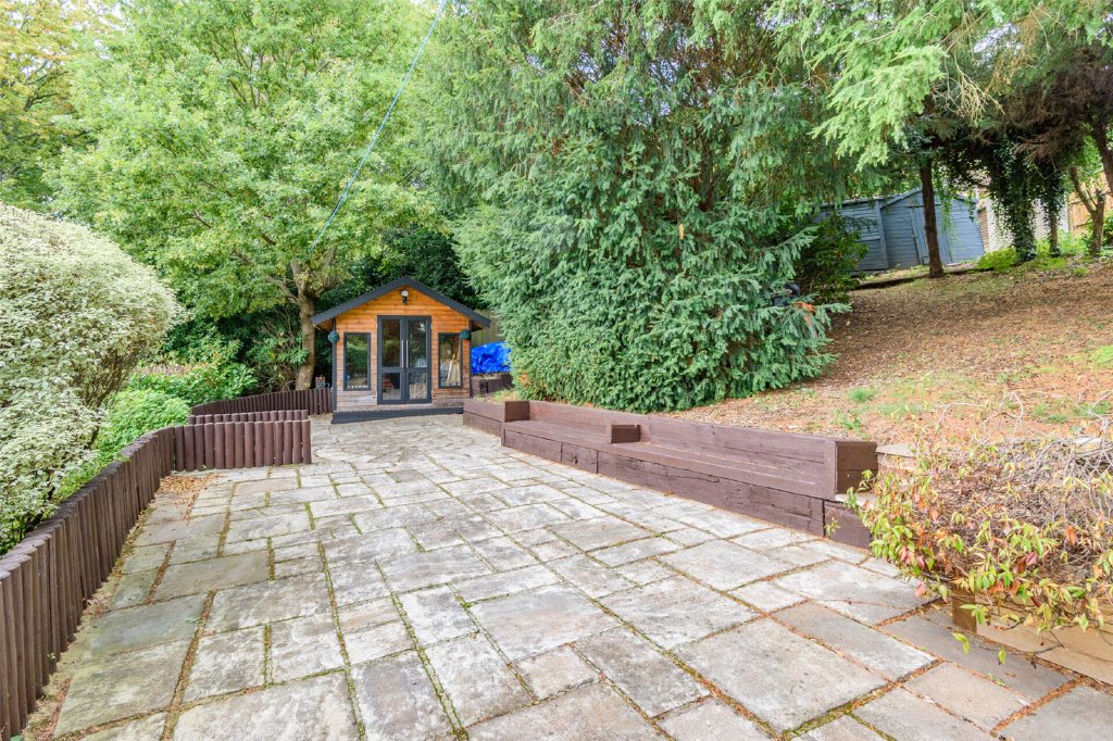 Outside, the landscaped gardens have been cleverly designed across tiers to make the most of the natural slope, offering a choice of paved and decked terraces, perfect for entertaining, relaxing, or simply enjoying the sunshine throughout the day. A level lawn area is ideal for children and pets, while a more secluded area houses a hot tub for indulgent evenings. In addition, there is an extra parcel of land opposite the house which provides further parking or potential for a variety of uses.