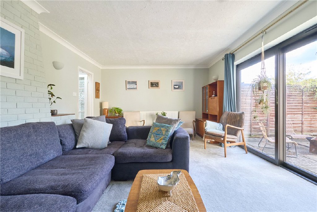 At the front, the sitting room features a wide bay window which fills the space with natural light, creating a warm, homely feel.