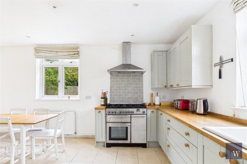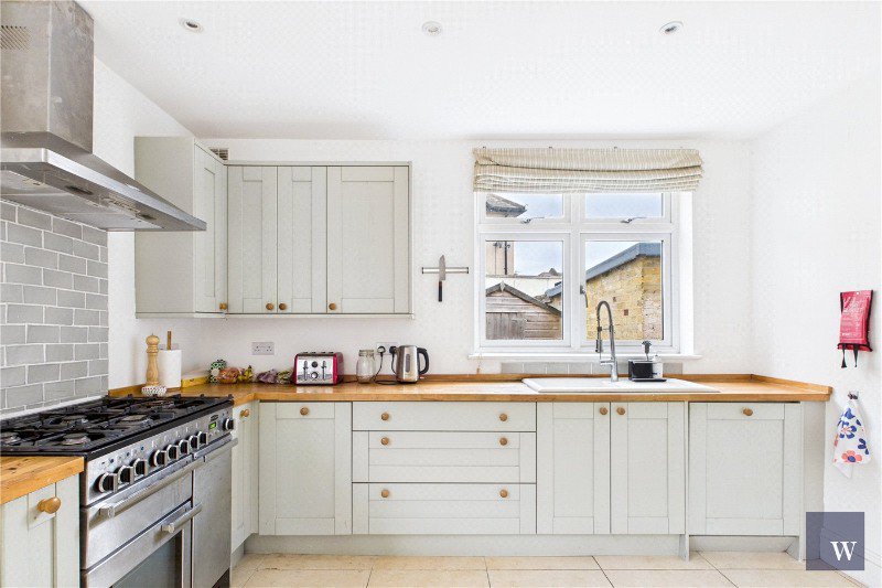 On a much-loved residential road, this bright and airy family house unfolds with well-balanced rooms, excellent storage, side access and off-street parking. A wide hallway introduces a generous bay-fronted reception room with working fireplace and chimney, perfect for quieter evenings. To the rear, a large open-plan kitchen and dining room forms the everyday hub, with plenty of worktop space and room for a long table opening onto the garden; a second sitting area here makes it a superb space for family life and entertaining.