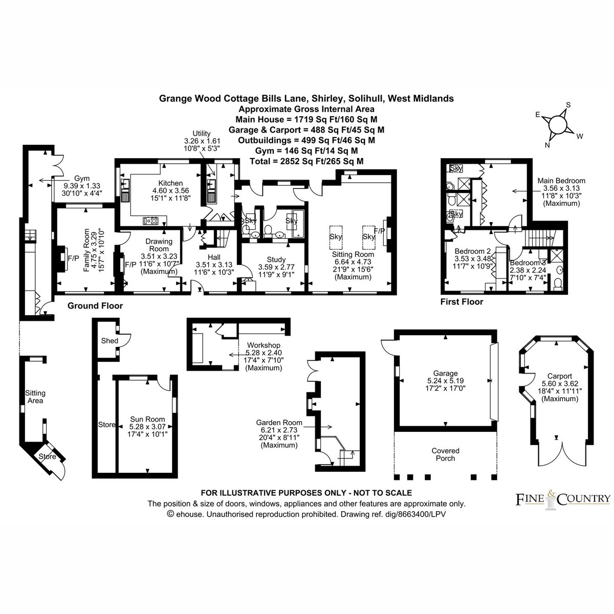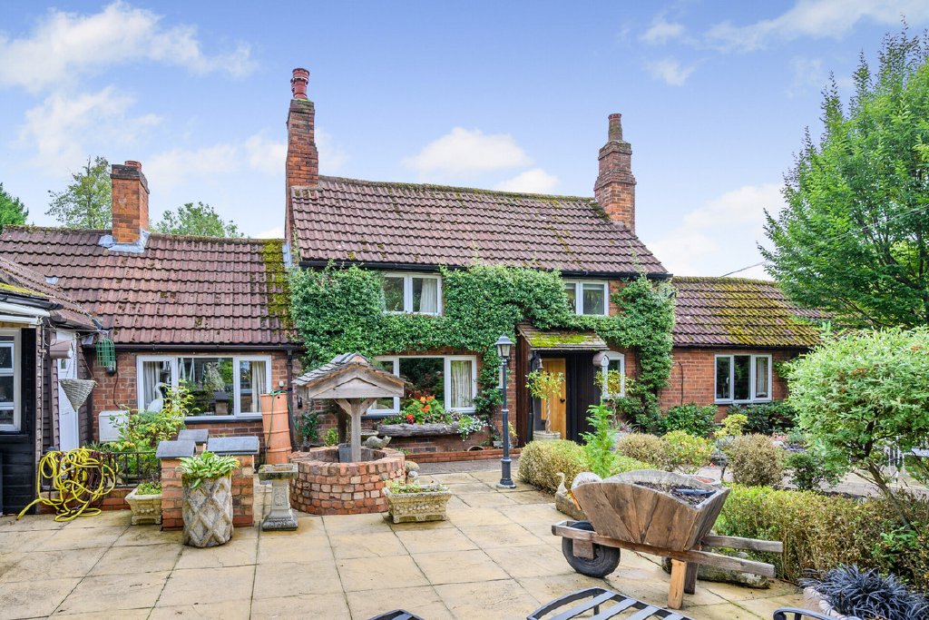 Approached via electric security gates, the property immediately impresses with its generous frontage, offering extensive off-road parking, a detached garage with carport, a further double garage, and additional storage spaces including a workshop and garden sheds. The beautifully landscaped front garden is a standout feature, complete with an original well and a covered seating area that adds to the home’s fairy-tale charm.