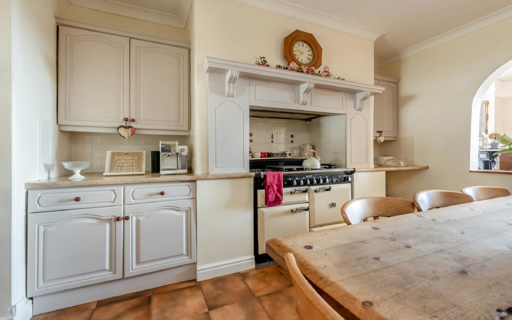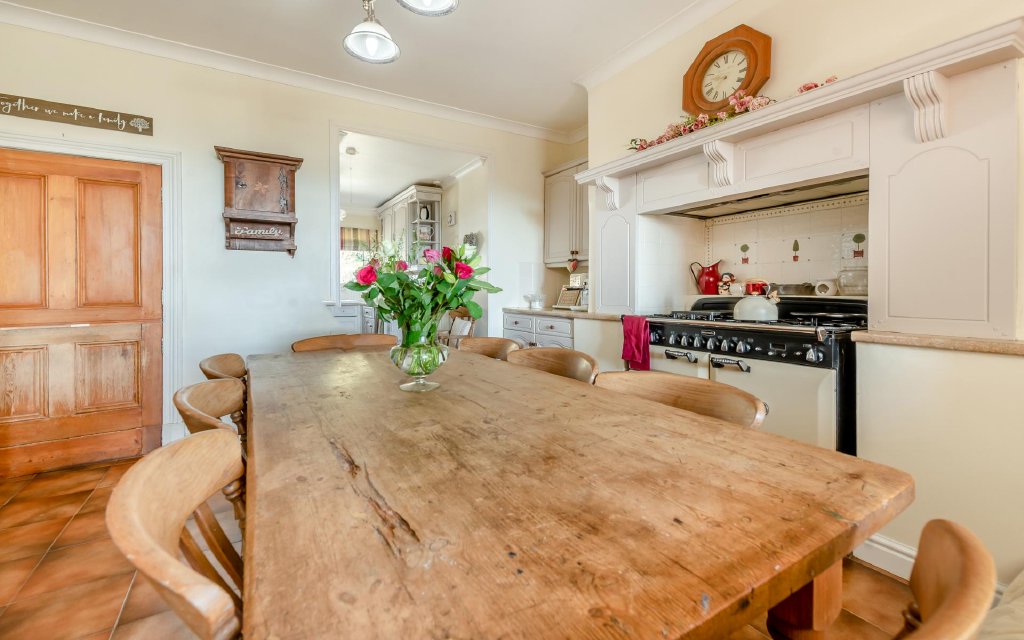 Built in 1885, this charming period home exudes character and warmth from the moment you step inside. The entrance hall sets the tone with a beautiful staircase rising to the first floor, hinting at the home’s heritage and craftsmanship. To the right, a welcoming sitting room features attractive wood flooring, a period fireplace, and a wide opening into the kitchen/breakfast room. Here, a tiled floor, fitted units with inset sink, and a recess for a range cooker create a practical and sociable space at the heart of the home.
