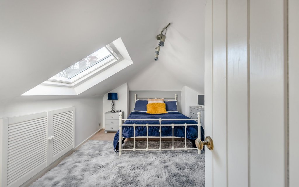 Upstairs, the first floor offers three well-proportioned double bedrooms, two of which face south and all include original fireplaces. Two bathrooms serve this level, one of which is currently used as an en suite to the principal bedroom. The second floor provides two additional bedrooms, ideal as children’s rooms, guest accommodation or even a home office, completing this generously proportioned and characterful family home