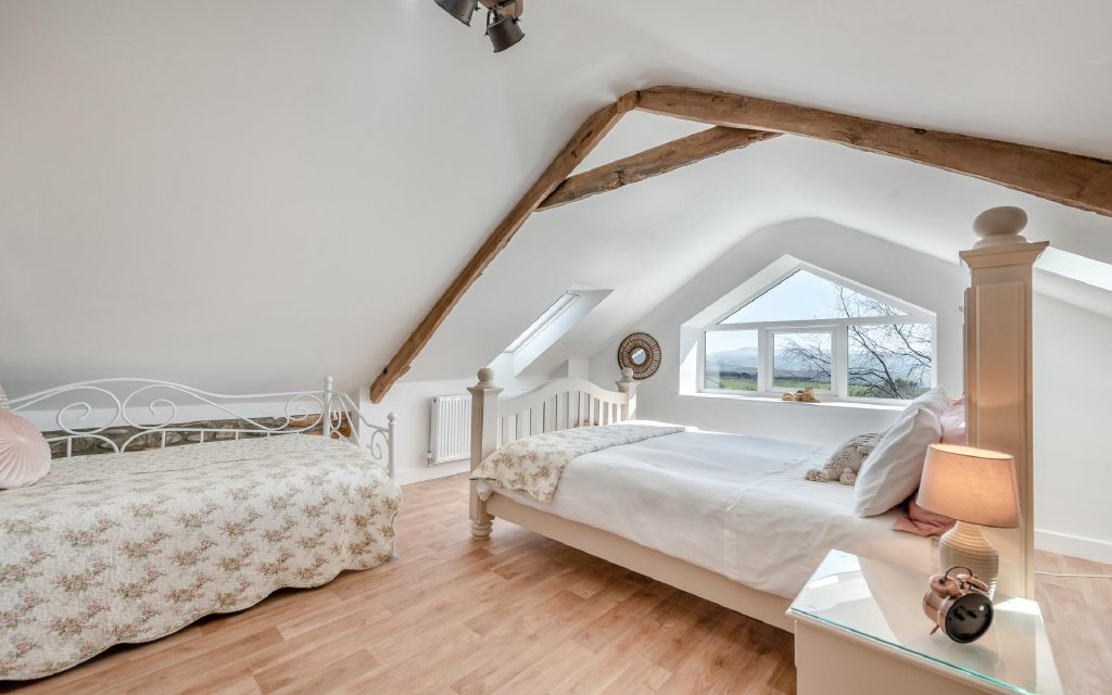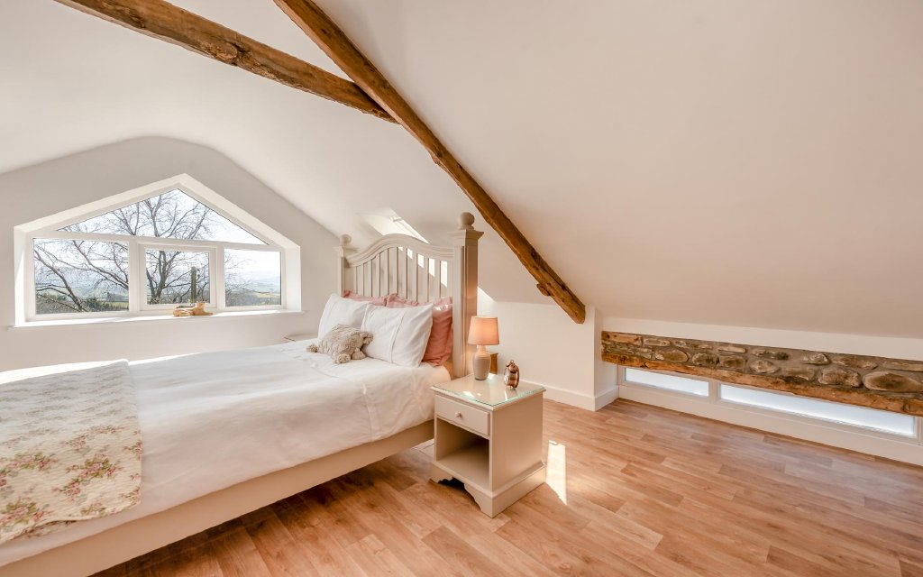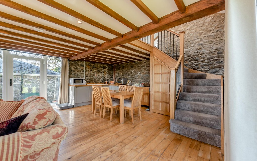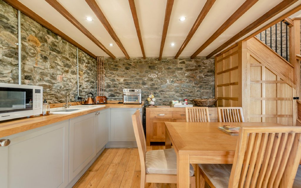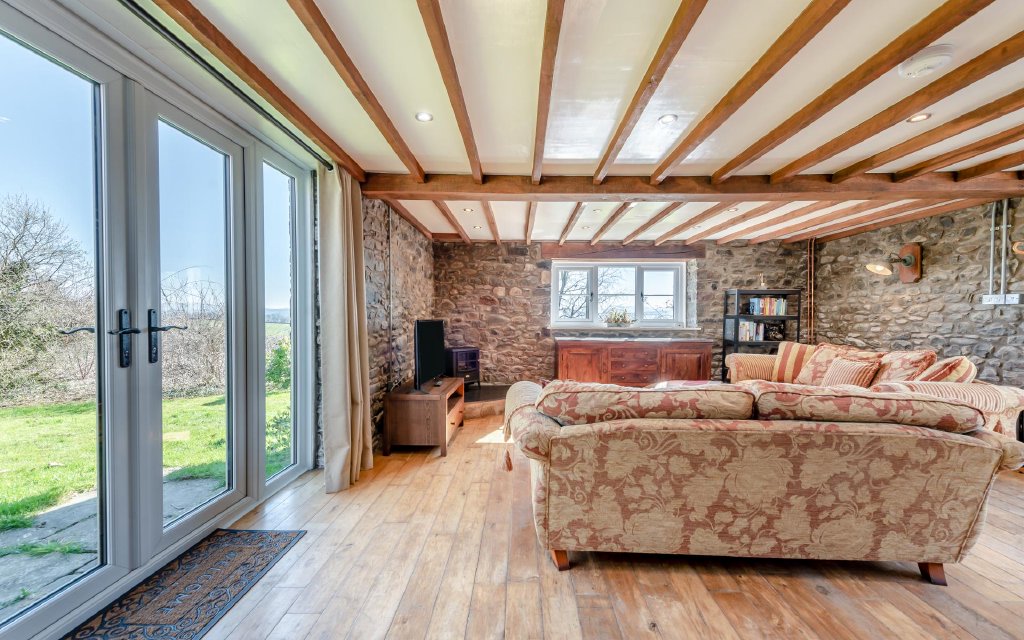 This charming barn conversion, known as The Cottage, beautifully retains the character and rustic charm of the original agricultural building. Exposed stonework and natural timber details create a warm and inviting atmosphere throughout. A striking glazed entrance screen welcomes you into the open-plan living space, where attractive wood flooring, a compact range of fitted kitchen units, and a south-facing window combine to make the most of the natural light and far-reaching views across the surrounding countryside.