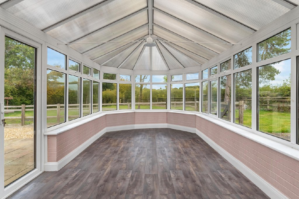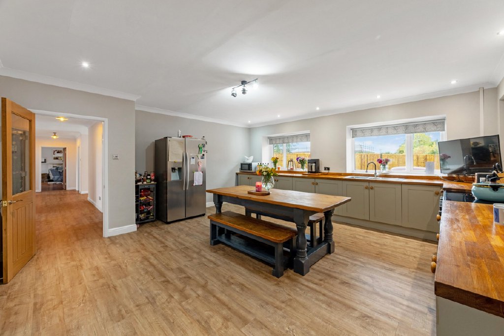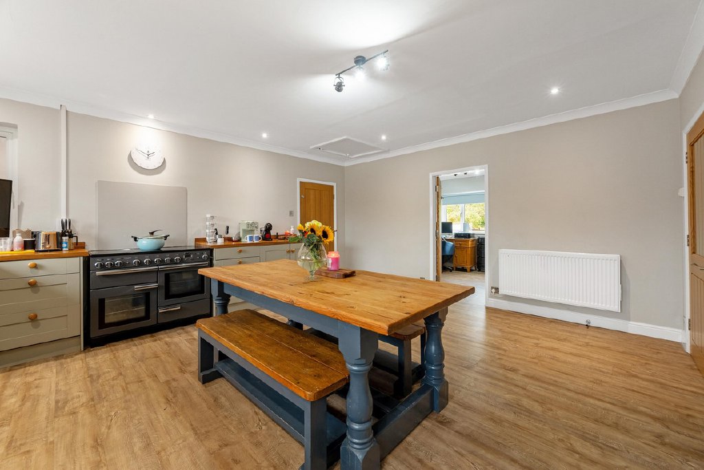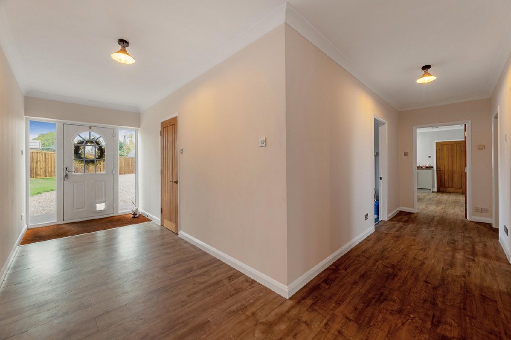 South Lodge is an attractive, modernised and extended single storey dwelling, tucked away down a long drive, occupying a plot of just under half an acre. The property has been extended recently with a large garage which could also provide multigenerational living as a sizable annex to the main house, which has just over 3000 ft2 of accommodation, with five well-proportioned bedrooms, a large entrance hall, large family bathroom, a conservatory with panoramic views of the gardens and a spectacular lounge with views to both the front, side and rear, plus a large kitchen/breakfast room. The gardens overlook the neighbouring countryside and there is extensive parking with a gated gravel driveway. The house offers the convenience for a buyer of no onward chain and is ideally suited for those purchasers’ seeking privacy and a rural lifestyle, given its privileged position with open fields to the rear. The house offers the convenience for a buyer of no onward chain and solar panels with inverter batteries, providing a considerable saving compared to normal oil-fired homes in rural communities.