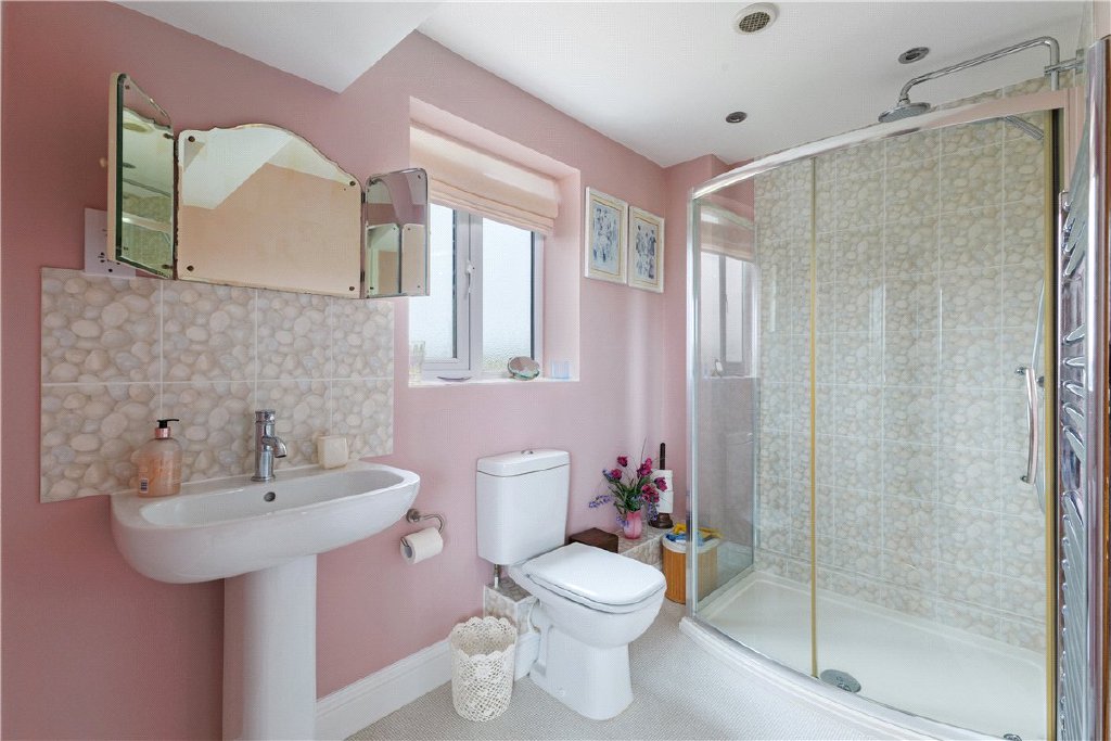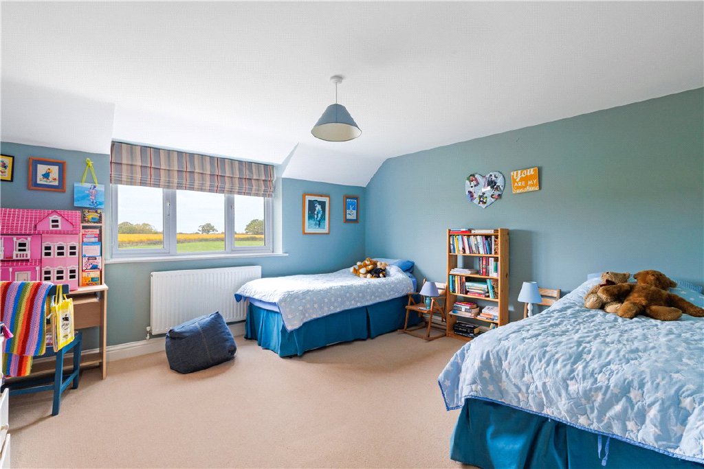 An elegant oak staircase ascends from the hall to a spacious landing, granting access to the principal bedroom with en-suite bathroom. A second en-suite guest room, and three further double bedrooms, all served by a well-appointed family bathroom. From each bedroom, you can enjoy wonderful and far-reaching views over the surrounding countryside.