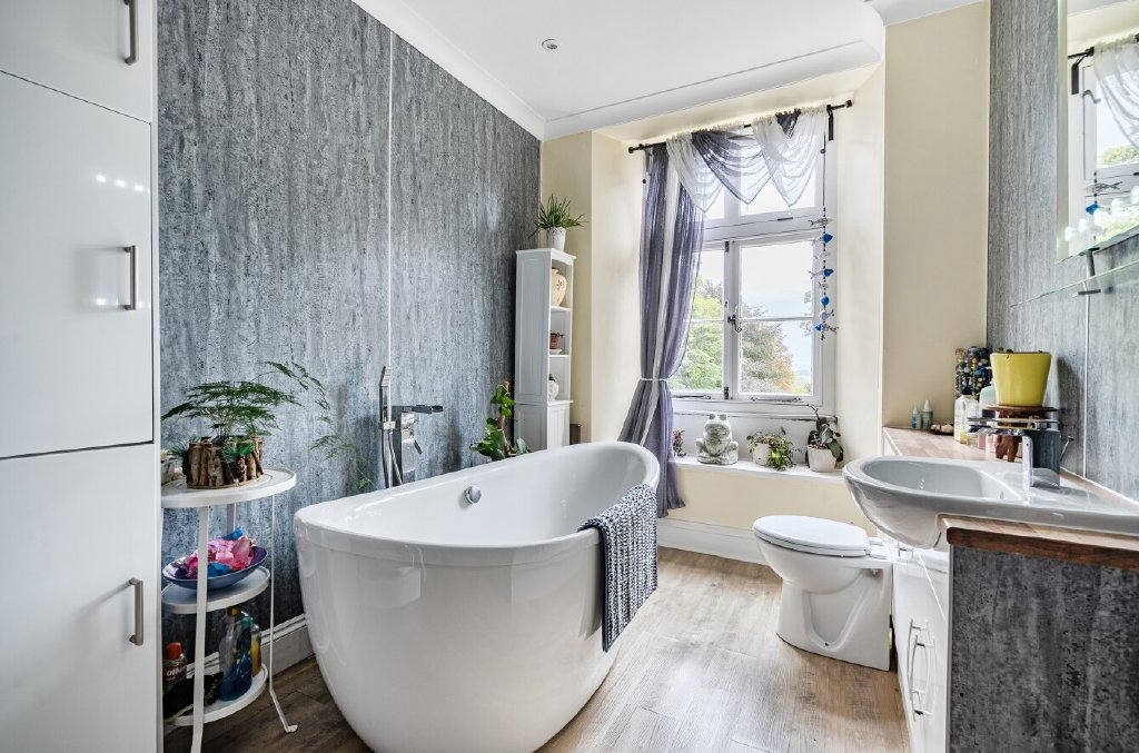 Arranged over three floors, the house offers exceptional flexibility, including an annexe that once housed the owner’s parents — ideal for multigenerational living or guest accommodation. Many original features remain – working shutters, fireplaces, stone floors and sash windows that flood the rooms with light.