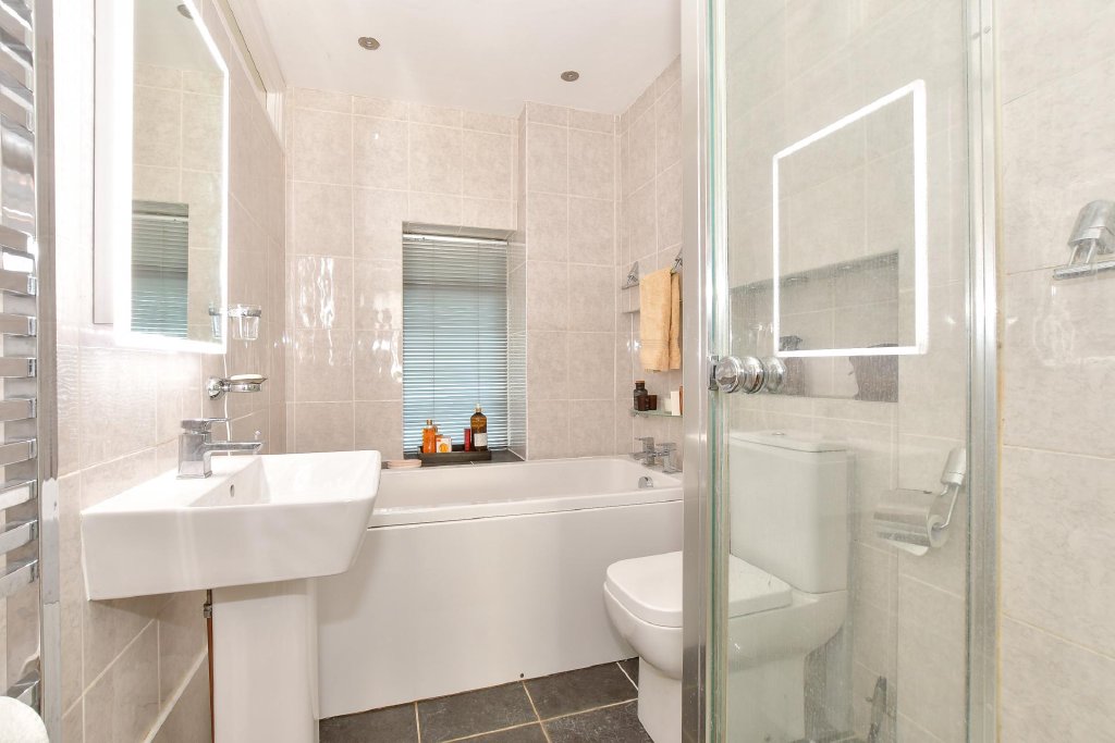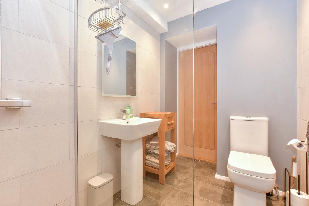 The lower ground floor, with its own private entrance, has been recently transformed into a fully self-contained one-bedroom apartment. Finished to a high standard, it features a modern fitted kitchen, spacious double bedroom, contemporary wet room, and dual-aspect sitting room with French doors opening onto a decked terrace and the landscaped garden beyond, perfect for guests, multi-generational living, or rental opportunities.