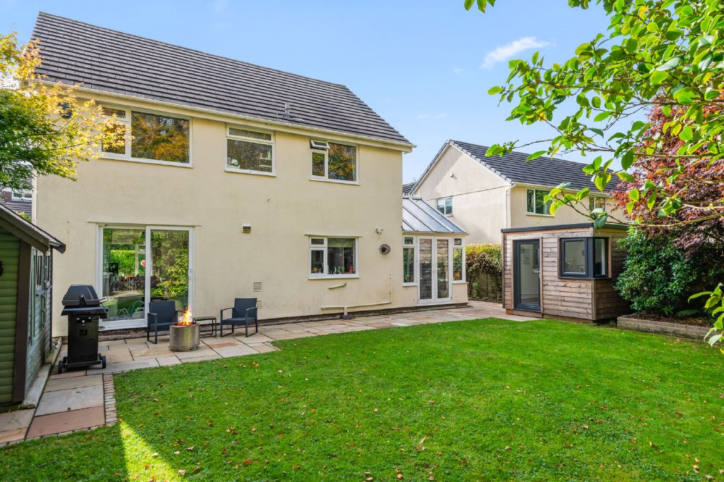 A beautifully finished four-bedroom home set in a quiet Whitchurch cul-de-sac, close to Whitchurch Down and Tavistock town centre. Immaculately presented throughout, it features a bespoke handmade kitchen, elegant living room with library wall, and bright conservatory. Wonderful gardens include a gentle brook, BBQ area, and a fully insulated garden office. With double garage, EV charging point, and ample parking.