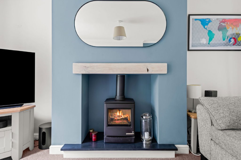The kitchen is a bespoke, handcrafted design with solid wood work surfaces, a pull-out butcher’s block, and a Belfast sink. The Rangemaster completes this exceptional space, which flows seamlessly into the conservatory, a bright, versatile room perfect as a dining area, snug, or playroom. The current owners have added UV film to the roof glass for improved thermal regulation, making this an enjoyable space year-round.