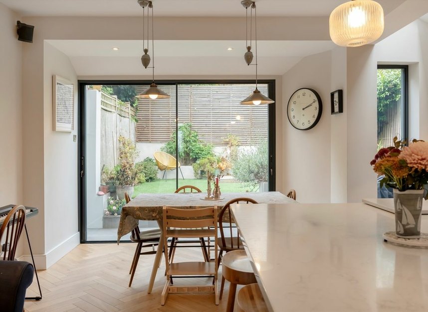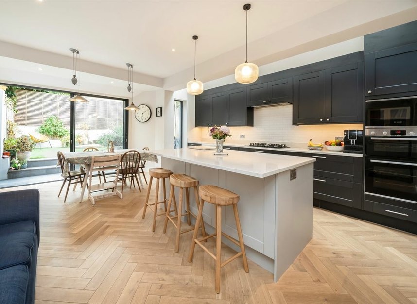 An attractive and stylishly renovated Victorian family home blending period features, including wood flooring, high ceilings and fireplaces. The property also features an open plan kitchen/diner/family room with large glazed doors leading to the garden.