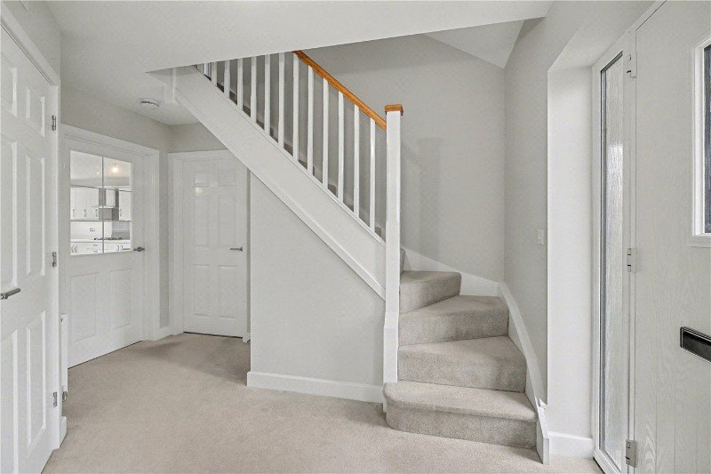 Upstairs, the light-filled landing leads to four well-proportioned double bedrooms, all beautifully finished in soft neutral tones. The principal and second bedrooms each feature stylish en-suite shower rooms and fitted storage, while the remaining bedrooms share a luxurious family bathroom complete with bath and walk-in shower. A large airing cupboard adds useful storage space.