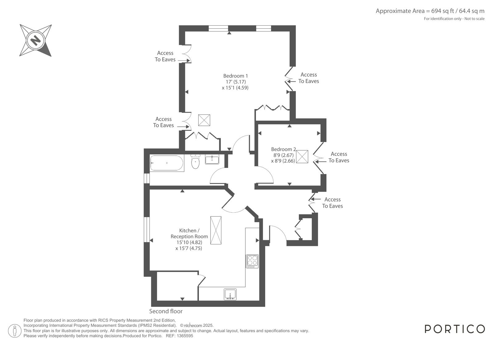 The layout includes a welcoming entrance hall leading to all areas of the property. The spacious open-plan kitchen and reception room is bathed in natural light, creating a stylish and comfortable living space. The principal bedroom offers fitted wardrobes and bespoke cabinetry, while a second well-proportioned bedroom and a sleek, contemporary family bathroom complete the accommodation.