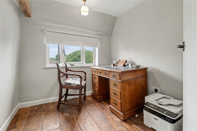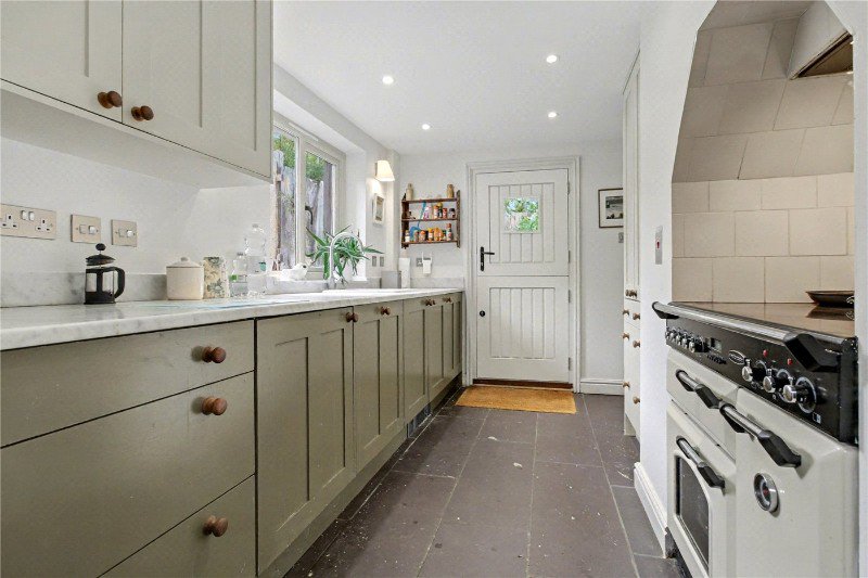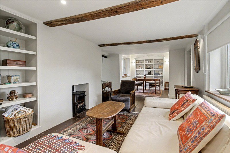 This enchanting cottage has been thoughtfully improved and extended by the current owner, resulting in a home of real character and quality. Approached over a shingle driveway, the property opens into a stunning reception room extending over 26 feet in length. A log burner provides a focal point to one wall, while triple-aspect windows flood the space with natural light. The dining area, forming part of the modern extension, enjoys underfloor heating and views across the garden—an ideal space for entertaining family and friends.