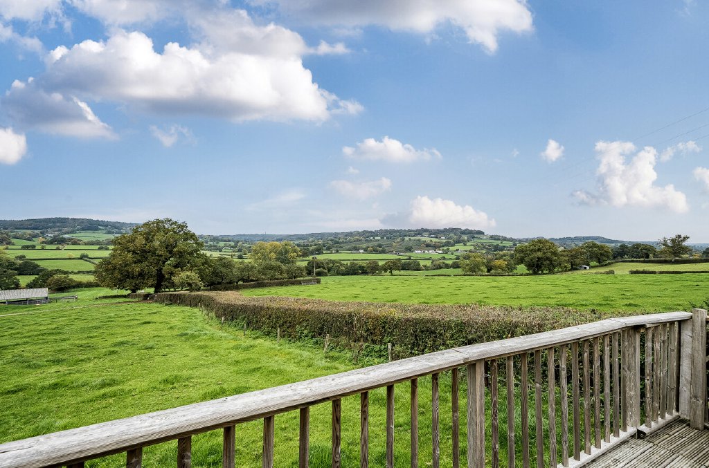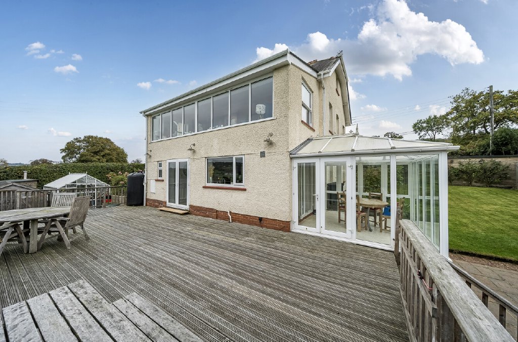 To the left of the house lies a further lawned area with a secluded barbecue space. Steps lead up to a raised decking area that extends across the full width of the property and has been designed to make the most of the delightful rear aspect and far-reaching views. Beneath this decking, part of the space has been cleverly converted to provide additional storage.