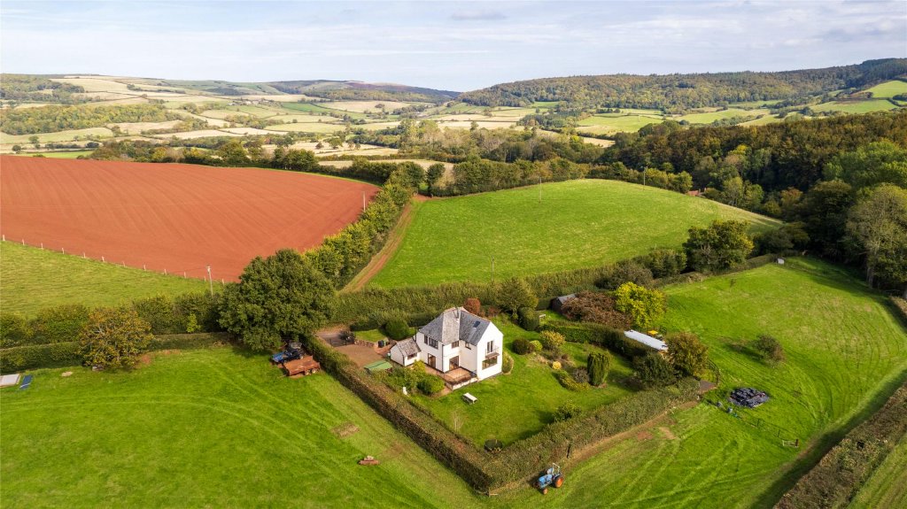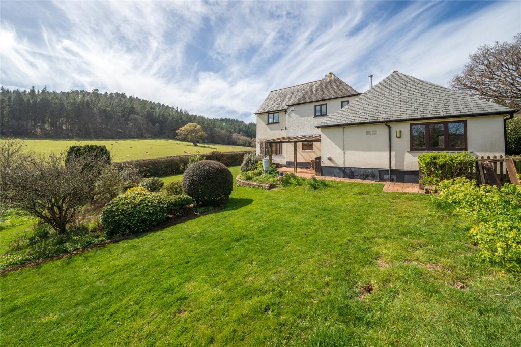 NO ONWARD CHAIN - A beautifully appointed four bedroom country residence in a tranquil Exmoor setting, surrounded by rolling farmland and views towards Dunkery Beacon — a truly special rural retreat with land, stables and timeless charm. EPC Rating D. Council Tax Band F