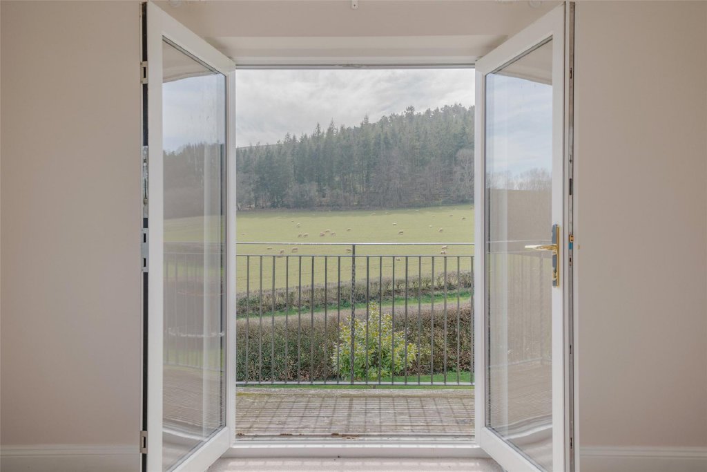 A staircase rises to the first floor landing with airing cupboard and roof access. The principal bedroom is a stunning triple-aspect suite with a cantilever balcony, perfectly positioned to take full advantage of the panoramic views across the gardens and surrounding countryside towards Dunkery Beacon — a peaceful retreat to enjoy morning coffee or an evening sunset. There are three further bedrooms, two generous doubles and a versatile single with adjoining dressing room. The family bathroom is fitted with a contemporary white suite including a P-shaped bath with shower over, pedestal basin and WC.