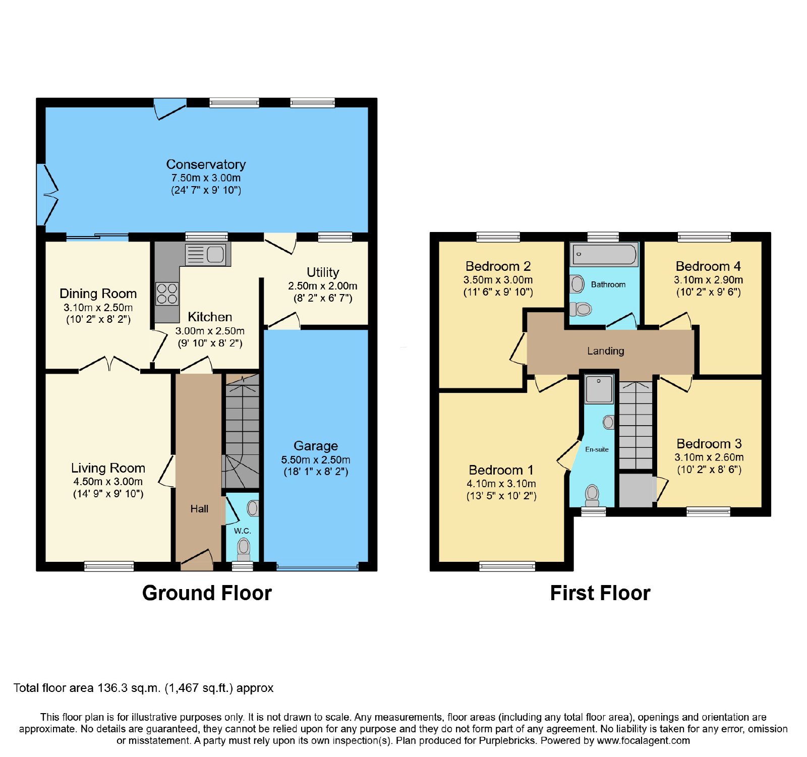 - Two Bathrooms (En Suite to Master) and Downstairs W.C.
