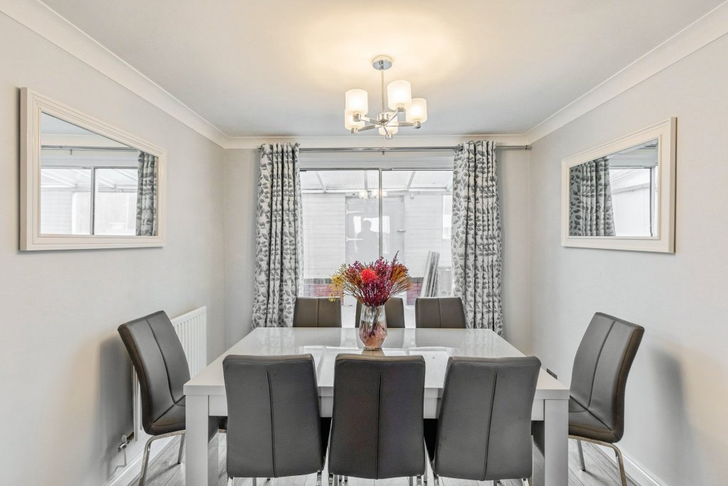 **NO ONWARD CHAIN** A beautifully presented detached family home, occupying a generous plot within a highly desirable residential development and enjoying lovely uninterrupted views over the green opposite. Gunnell Close is a sought-after cul-de-sac in the popular town of Kettering, ideally located within walking distance of excellent infant, junior, and comprehensive schools, as well as the train station, local shops, pub, cricket ground, athletics track, Leisure Village, golf course, and town centre amenities. Residents also benefit from close proximity to the A14 and Kettering railway station, providing superb commuter connections to surrounding areas and direct services to London St Pancras in under an hour. This prime location offers the perfect balance of convenience, community, and tranquillity — ideal for families, professionals, or downsizers seeking a well-connected setting. The property offers bright and spacious accommodation throughout, comprising: • Two generous reception rooms • A modern, well-equipped kitchen with utility room • To the rear of the property is a timber-clad enclosed extension with a polycarbonate roof, providing a bright and practical space that can be used as a utility area, hobby room, or informal garden room, with direct access to the rear garden. • A convenient guest W.C. To the first floor are three well-proportioned double bedrooms and a single bedroom, including a master bedroom with en-suite shower room, plus a family bathroom. Externally, the home enjoys a mature and well-maintained rear garden, along with a private driveway and garage, providing ample off-road parking. Offering space, style, and an enviable location — and available with no onward chain — this is an excellent opportunity to secure a superb family home in one of Kettering’s most desirable addresses.