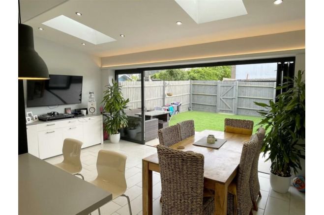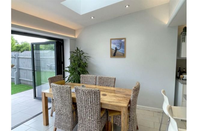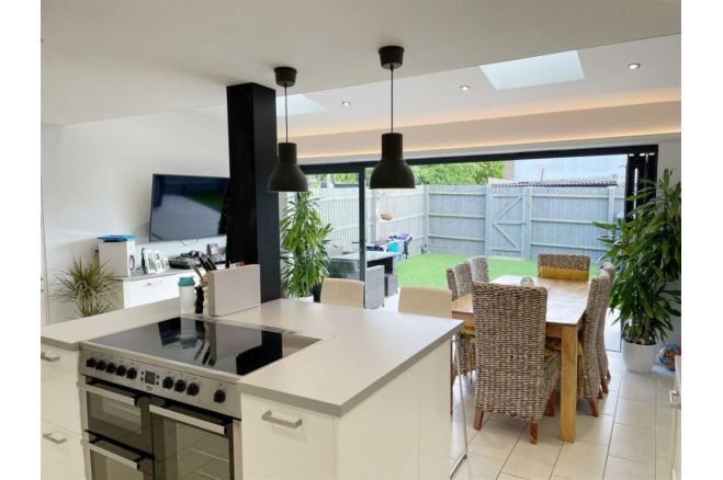 A beautifully extended and immaculately presented three-bedroom family home in the highly desirable village of Kintbury. This attractive property has been thoughtfully extended to provide generous and versatile living space, perfectly suited for modern family life. The home benefits from underfloor heating on the ground floor, uPVC double glazing, and a sunny south-facing rear garden. The ground floor features a welcoming entrance hall, cloakroom, a bright and comfortable sitting room, and a stunning open-plan kitchen/dining/family area with bi-fold doors opening directly onto the garden — ideal for both entertaining and everyday living. Upstairs, there are three double bedrooms, two of which include built-in wardrobes, along with a stylish family bathroom featuring a separate shower. Outside, the low-maintenance rear garden enjoys artificial turf and a patio seating area, perfect for relaxing or al fresco dining. To the front, a gravel front area to park two cars plus, on the other side of the road, a pleasant grassed area provides a great space for children to play or for dog walks. The sought-after village of Kintbury offers an excellent range of local amenities including a primary school, railway station, two welcoming pubs, recreation area for football, tennis, bowls, skatepark, Jubilee centre which provides Weekly, Yoga, Karate, Table Tennis, Badminton, fencing sessions and much more plus a selection of local shops. Surrounded by beautiful countryside within the North Wessex Downs Area of Outstanding Natural Beauty, the area provides wonderful walking opportunities all year round.