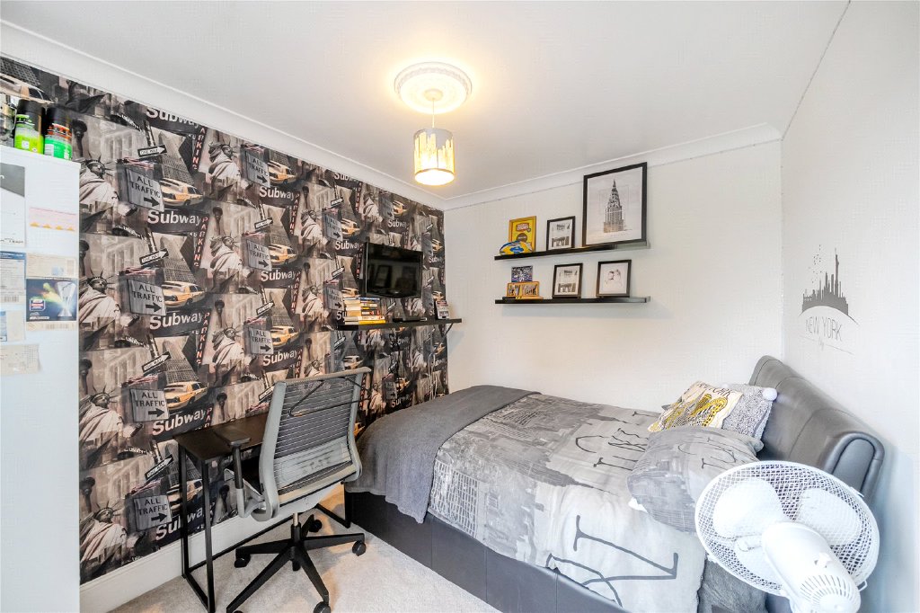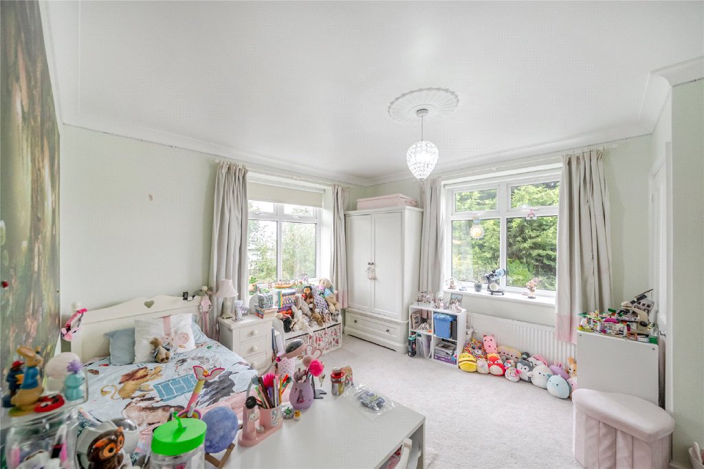 The staircase leads from the hallway to a bright and airy first-floor landing, giving access to five well-proportioned bedrooms. The primary bedroom suite is a standout feature of the home, offering a generous double bedroom with fitted storage and a stylish en-suite shower room. A second bedroom also benefits from its own en-suite facilities, ideal for guests or older children. The remaining three bedrooms are all good-sized doubles, providing ample space for family members or visitors. Completing the first floor is a family bathroom fitted with a modern suite, along with a separate WC for added practicality.