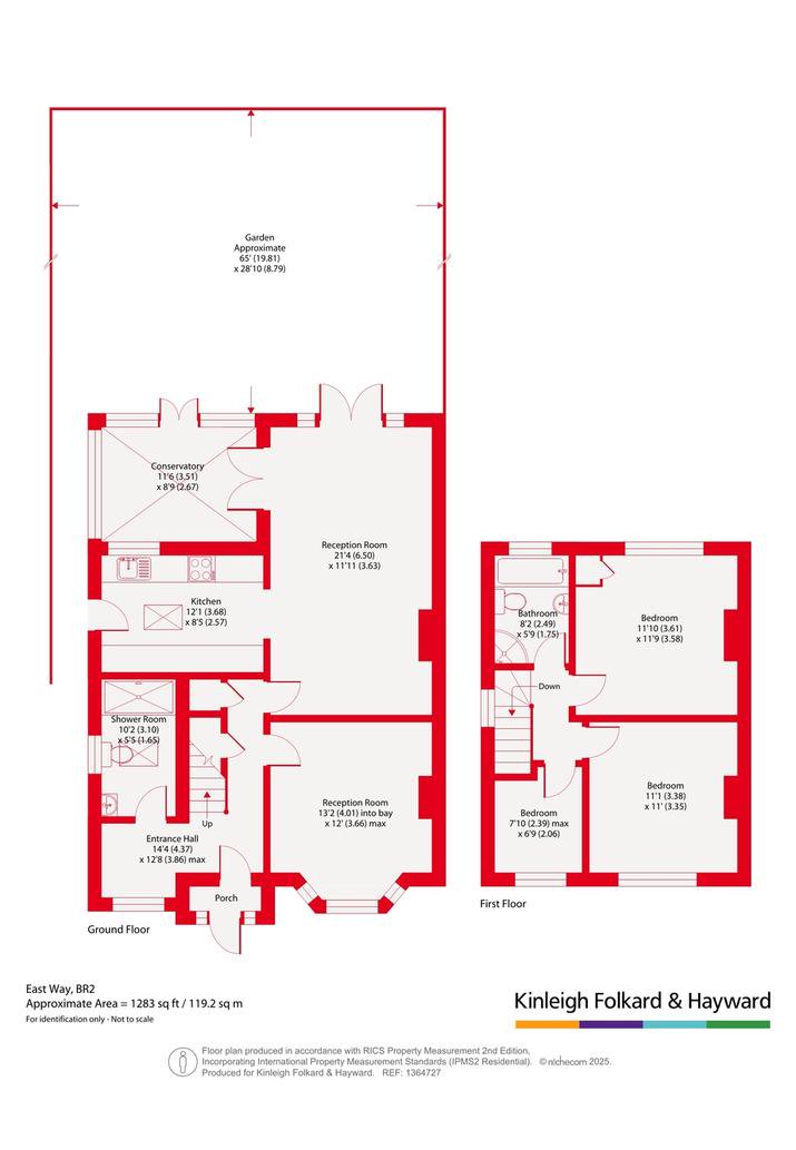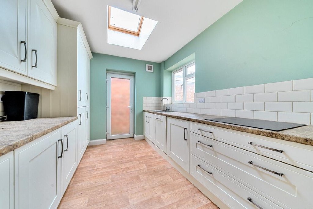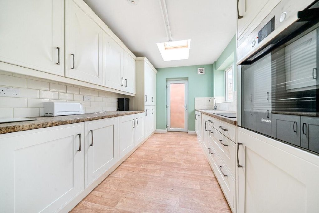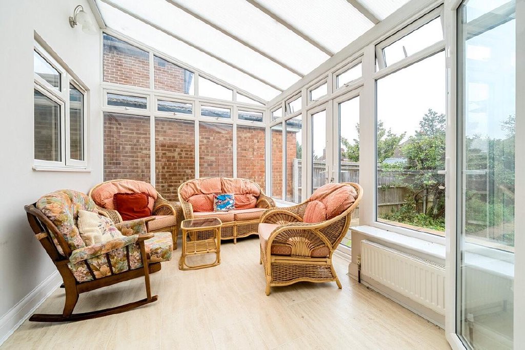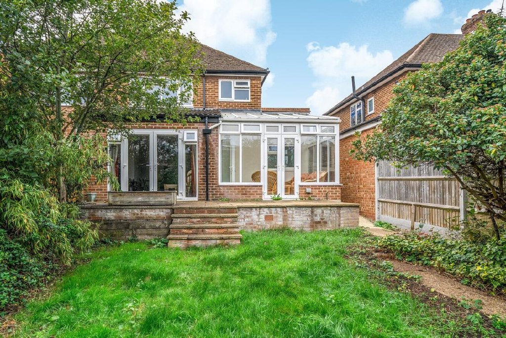 The property offers 1,218 sqft and features two reception rooms, along with an open-plan kitchen and conservatory. Additional benefits include two bathrooms, a 65-foot rear garden, and off-street parking.