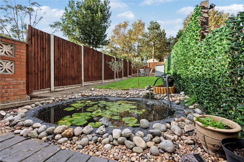 Outside, to the front of the property is stylish tiled area with shingles and shrubs leading to the main entrance door. To the rear is a generous bisected garden which is laid mainly to lawn with a fishpond and an area of patio at the back. There is also a pre-installed power supply via armoured cable to rear of the garden as well as a concrete pad, giving great potential if you wanted a summerhouse or home office.