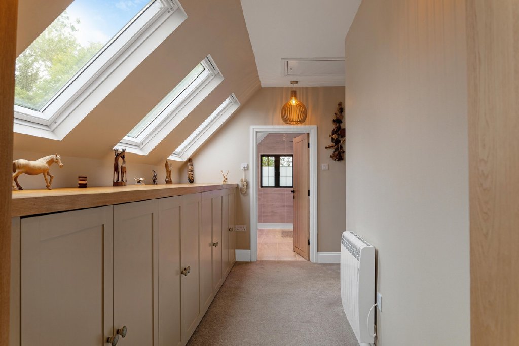 Dunsmore Gate House has undergone a significant transformation with a combination of period charm and features, and modern living. The house has more than doubled in size in recent years and now has four double bedrooms in the main house with the principal suite having a dressing room and ensuite shower room. There is a second bedroom with ensuite shower room and two further double rooms share a large family bathroom. The ground floor has perfect entertaining space with a large kitchen family room taking full advantage of the panoramic views, a secret door that leads to the snug, and across the hallway past the utility room and cloakroom is a large sitting room with log burner. The home also benefits from a sophisticated Control4 smart home system, managing lighting, television, and music throughout the main ground floor rooms. To compliment the main house is a separate one bedroom apartment or guest suite above the double garage. The expansive gardens enjoy mostly south facing views with meandering pathways and a large terrace perfect for entertaining.