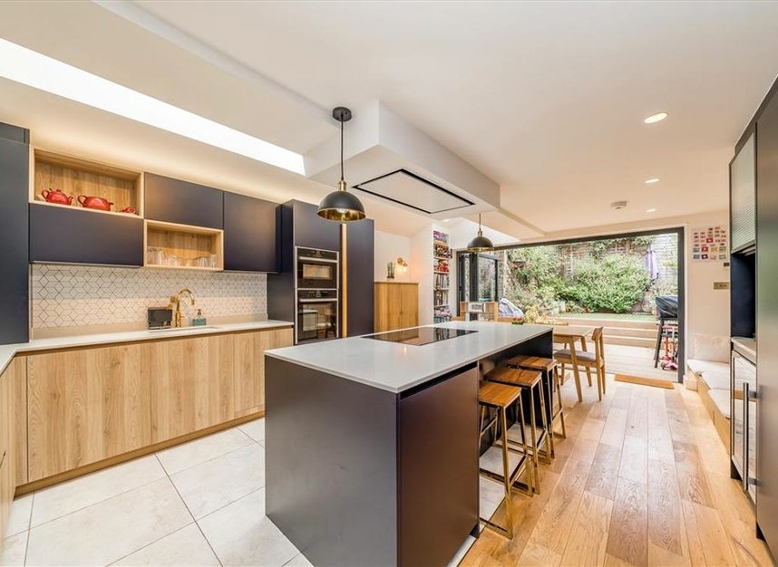 A superb and truly stunning four bedroom freehold home in exacting condition throughout having undergone extensive refurbishment with a footprint spread across three floors and comprises immaculate interiors, downstairs cloakroom and bi-fold doors opening onto a well maintained rear garden with mature plant borders.