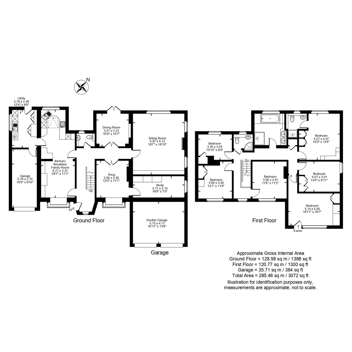 Stairs from the entrance hall lead to the first floor which comprises of six double bedrooms and three bathrooms.