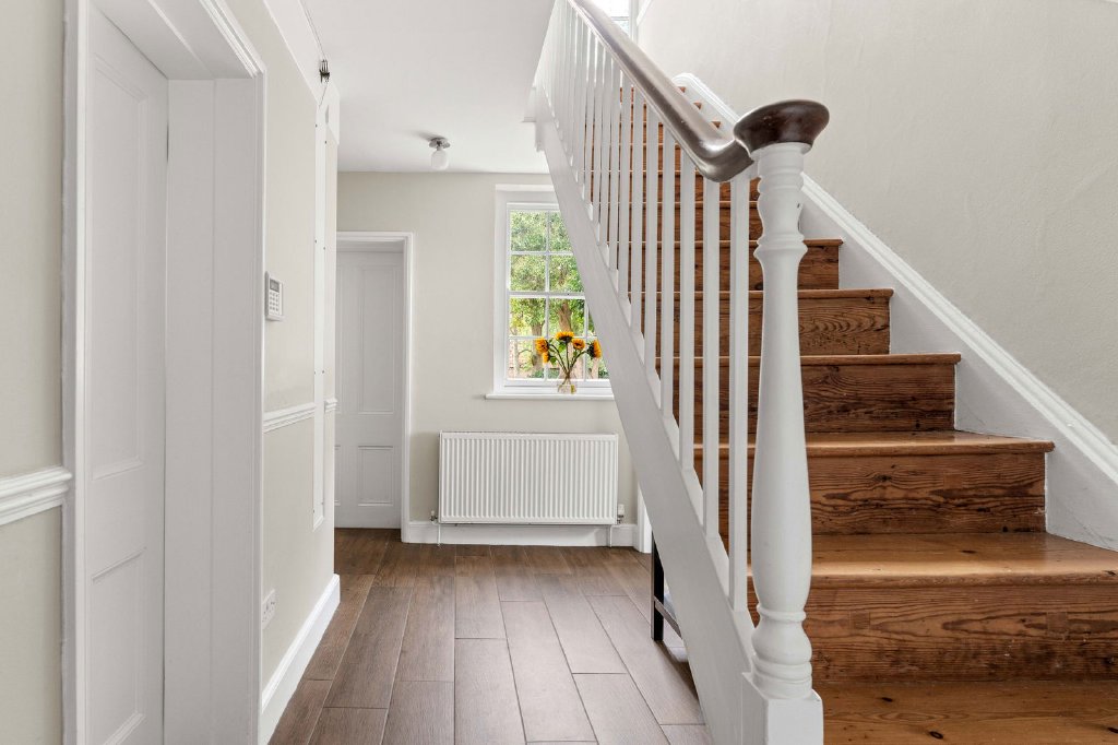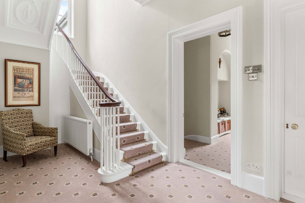Step inside and you’ll discover an interior that has been meticulously maintained, featuring stylish décor and exquisite restoration by master craftsmen, subtly honouring the home’s classical heritage. A welcoming vestibule with double doors opens into the grand entrance hall, where an impressive balustrade staircase with solid brass and walnut detailing sets the tone for the elegance that follows.