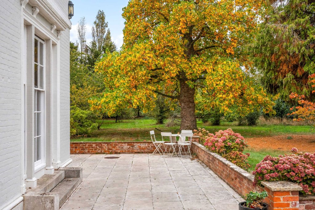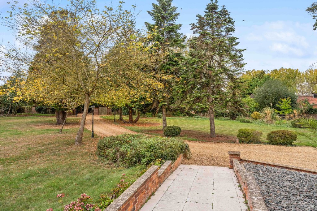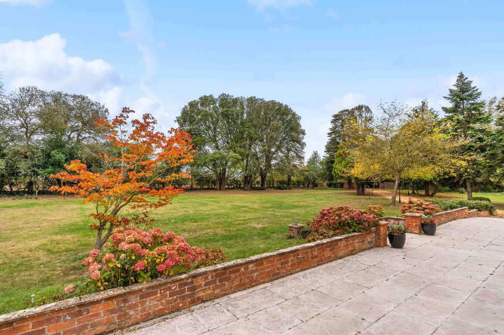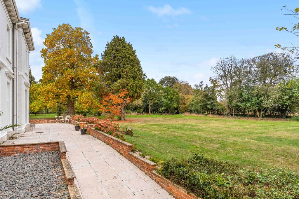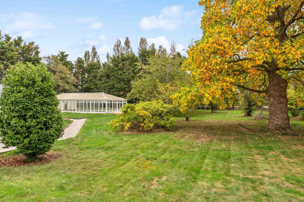Outside, a limestone-paved terrace leads seamlessly onto the beautifully maintained lawns, creating an inviting space for outdoor entertaining and relaxation. The grounds include an orchard with established fruit trees, a productive kitchen garden, and a paddock area, perfect for grazing or equestrian pursuits, completing the quintessential country lifestyle with beautiful surrounding rural views.