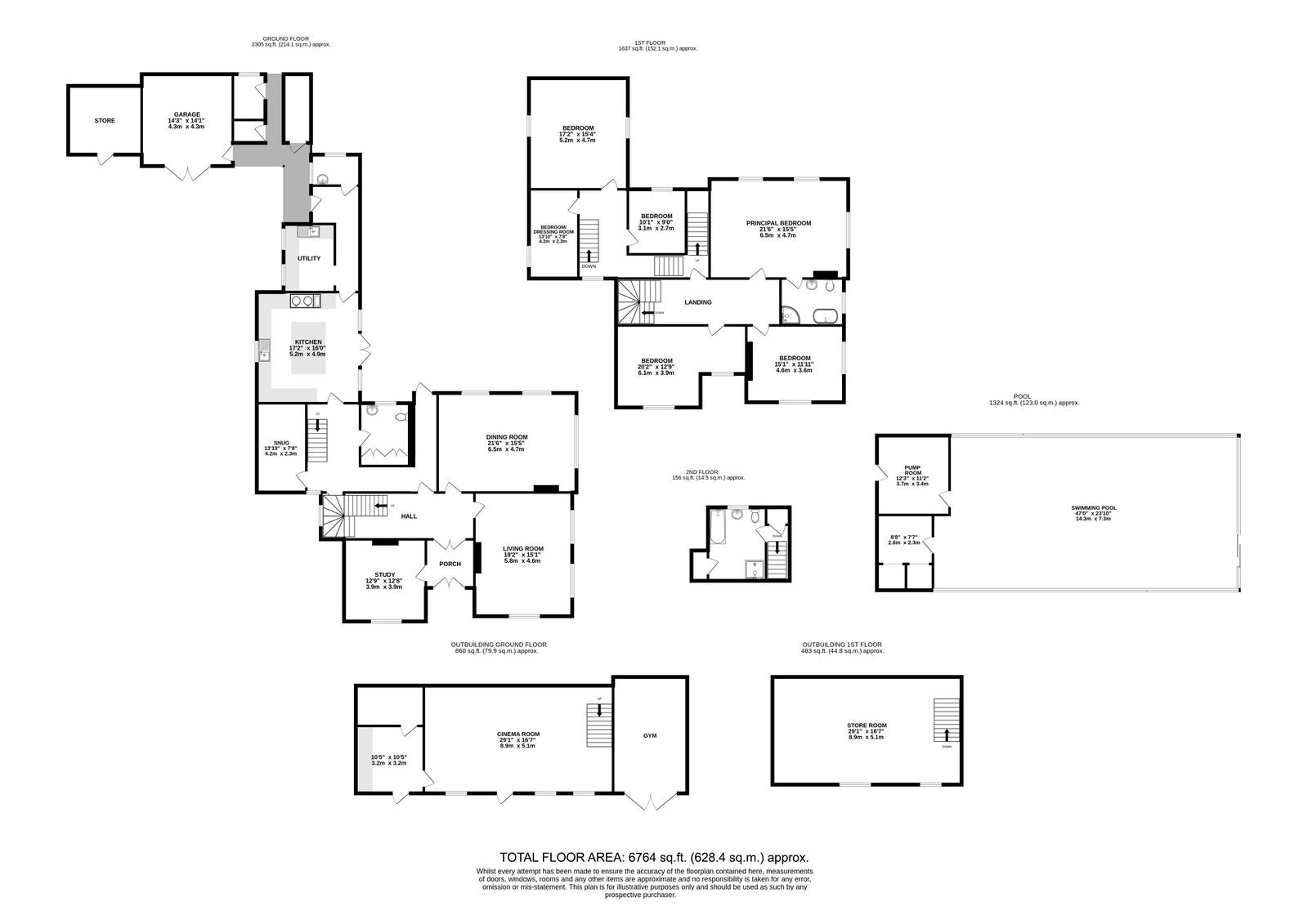 Car enthusiasts will appreciate the generous garaging and gym area, alongside a further garage/outbuilding currently housing the oil tank.