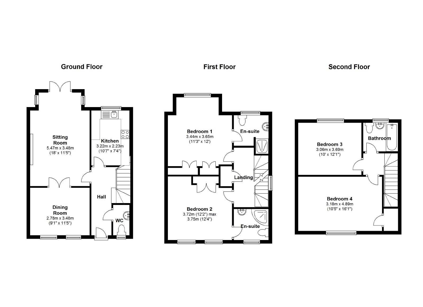 The first floor offers two double sized bedrooms, each with en-suite bathrooms, both of which with a shower cubicle, vanity sink unit, WC and heated towel rails. The landing enjoys a window to side aspect and an airing cupboard.